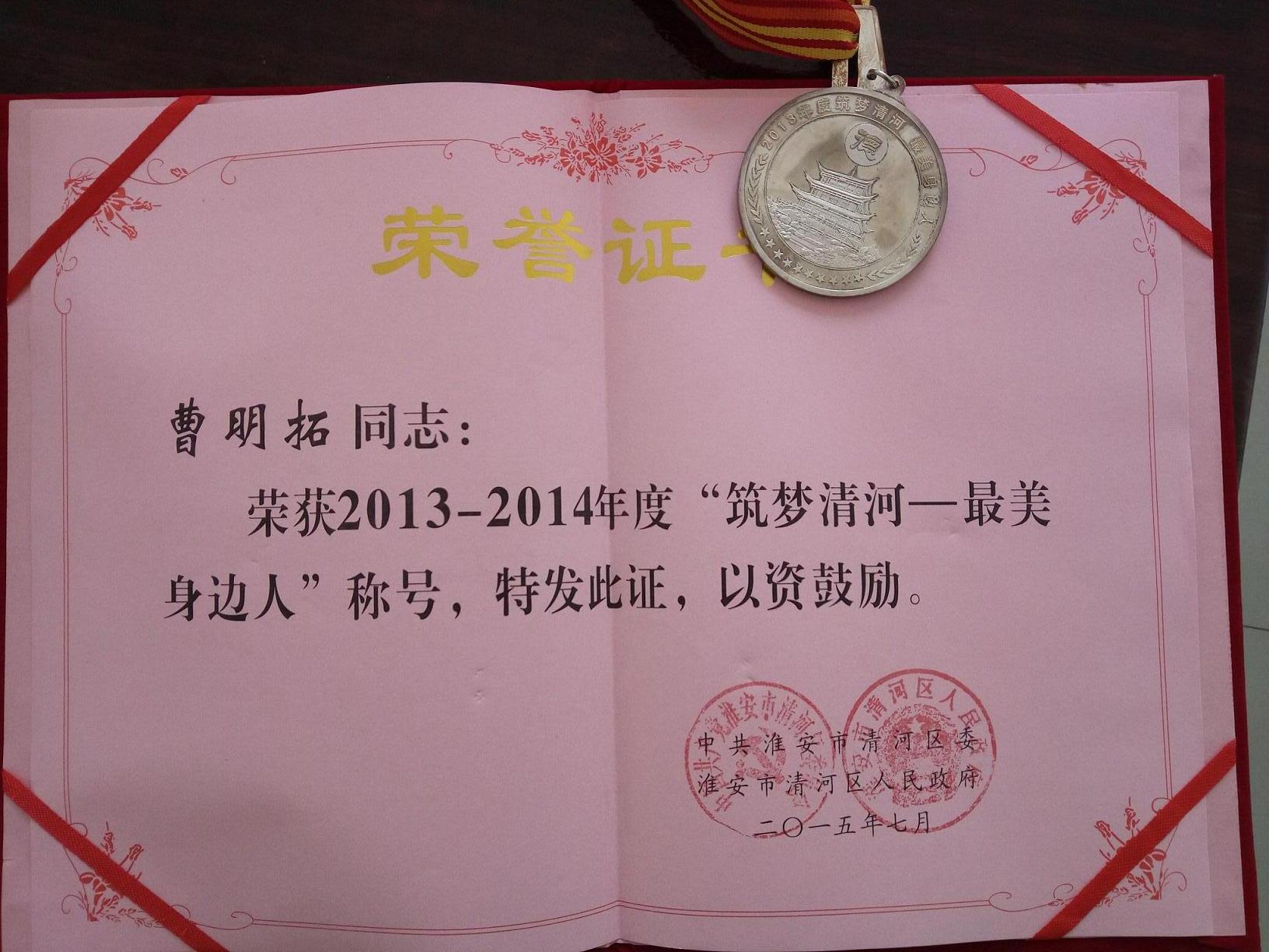公司董事長曹明拓榮獲2014年度“筑夢(mèng)清河,最美身邊人”稱號(hào),清河區(qū)政府舉辦了隆重的頒獎(jiǎng)儀式。